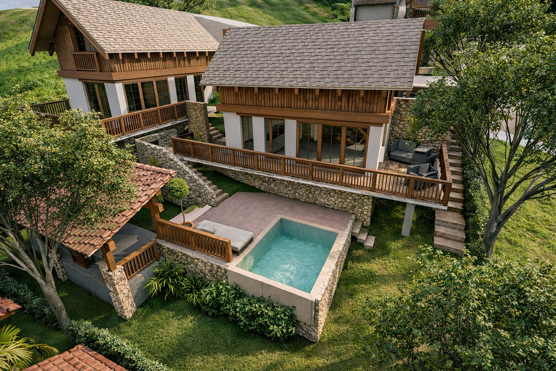 Montaña, vegetación y un río que atraviesa el proyecto crean un entorno difícil de encontrar hoy en día. Aquí la naturaleza no es decoración. Es protagonista. Un lugar ideal para vivir en familia, desconectarte del estrés e invertir con visión de futuro.